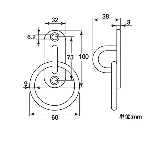 柱や壁面に設置し、チェーンを掛けたり、様々な物を掛けられます。 |