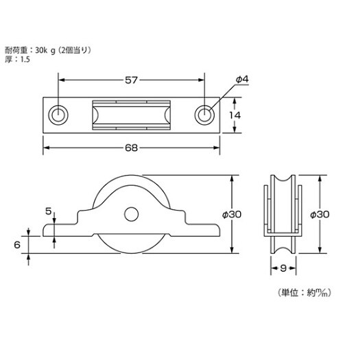 ハイロジック ステンレス戸車 丸型 30mm 1パック(2個入) A055-2287