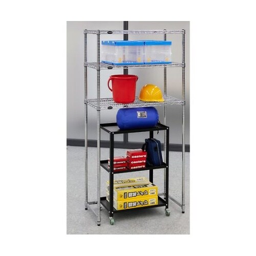 下の段を無くしたことによりワゴンや台車などの収納に便利で、かつ上部を有効に使えます。アジャスターは+15mmの調整ができるので水平出しも簡単です。各種倉庫や工場での保管・管理、店舗などでの陳列に。 |