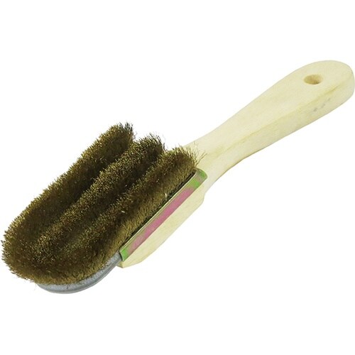 合金等の研磨仕上げに。「ワイヤーブラシ 剣型」と違い、木柄が反っているので平面での作業にも扱いやすい。 |