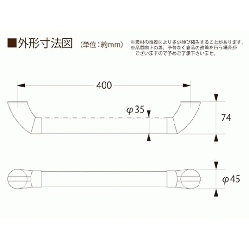 ハイロジック ディンプル手摺り 400mm 手摺直径:35mm A055-2916