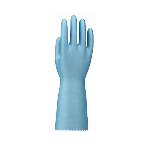手袋内面にビーズイン加工を施すことで、手肌への接着面が少なく、ぬぎはめがスムーズです。薄くて手にフィットする素手感覚の使い心地です。傷つきやすい指先は、2度漬け加工で強化しています。裾部分を厚めに加工 |