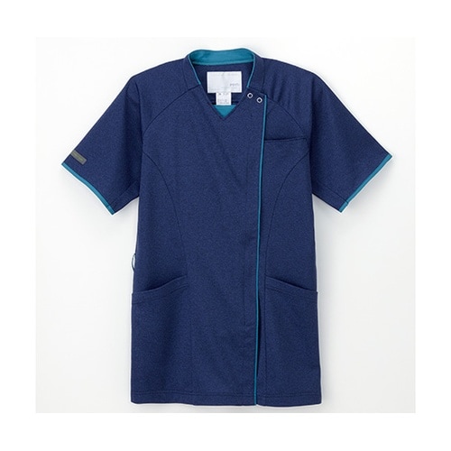 左胸ポケット、前両腰ポケット、後ろ右腰ポケット付き。エアーアームカット(R)を採用し非常に動きやすいデザインです。前ファスナーで羽織って着ることが出来る為着脱が簡単です。すっきりとしたスクラブタイプの