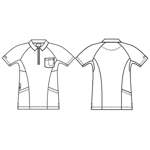 動きやすく涼しい機能性プラスきちんと感のある衿付きのデザインです。カラーファスナーが元気な印象です。接触冷感があり、汗蒸れしにくい素材です。高い伸縮性を持ち、着心地の良さと動きやすさを提供します。特殊