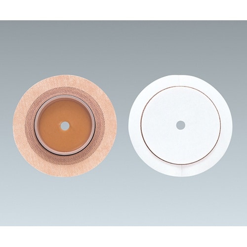 全体が平らな面板で、高さのあるストーマに適しています。交換目安は3−5日。はめ合わせ部分に厚みがあるため、ストーマに高さのある方に適しています。面板周囲の保護テープが、入浴時の皮膚保護剤周囲の溶けを防