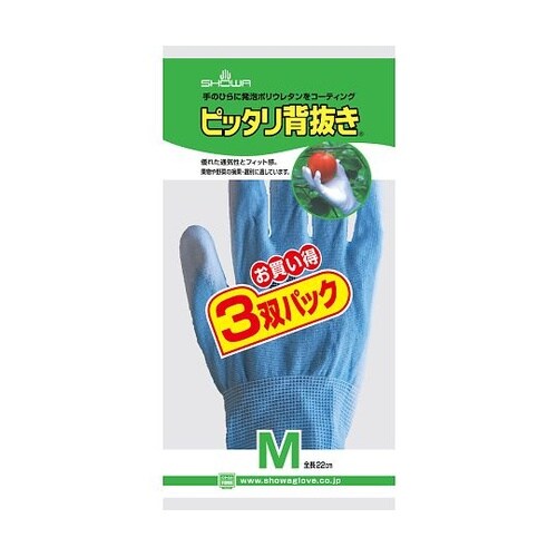 「ピッタリ背抜き」の3双パックです。発泡ポリウレタンを手のひらにコーティングしているため、高いスベリ止め効果を発揮し、通気性にも優れています。フィット感に優れているため、指先感覚が必要な細かい作業にも |