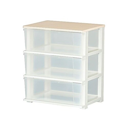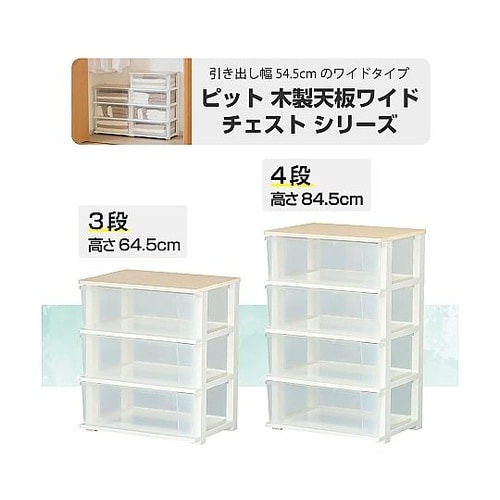 ピット木製天板ワイドチェスト 3段 ホワイト