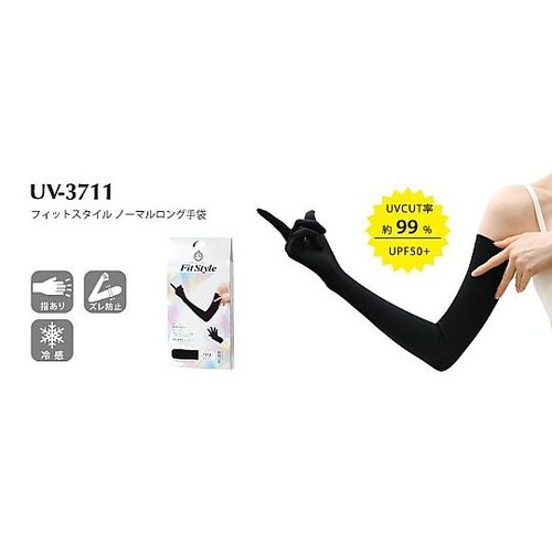 ズレにくい超ロングUV手袋。手の動きに合わせて素材が伸縮。心地よく引き締めながら二の腕上部まですっぽり。超ロングサイズなのにズレにくい! |
