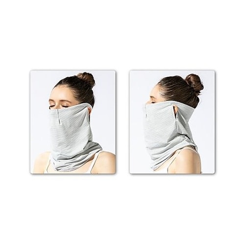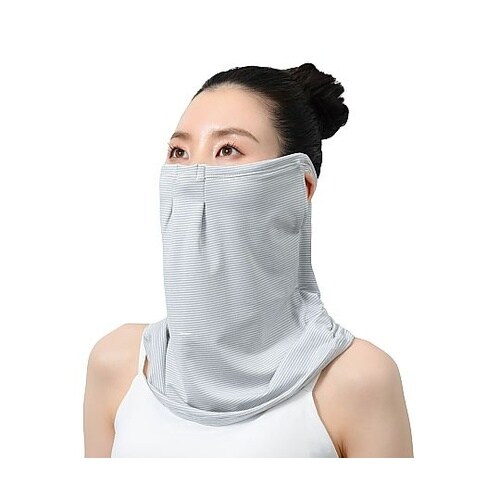 サッと簡単に装着。車や自転車の運転時に適しています。顔からデコルテ、首後ろまで。鼻部分は、タックで通気性UP!裏の顔側メッシュ部分は、ムレにくく、ベタつきにくい。 |