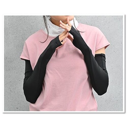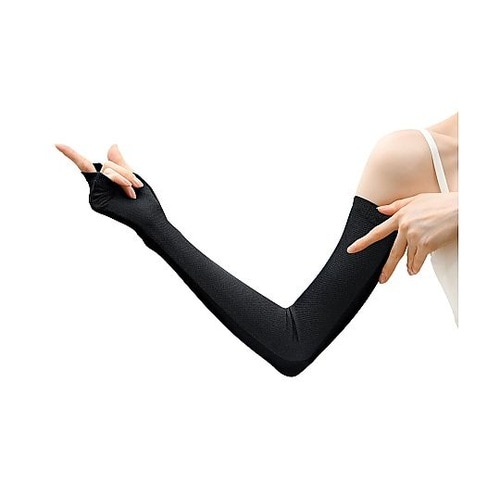 ズレにくい超ロングUV手袋。手の動きに合わせて素材が伸縮。心地よく引き締めながら二の腕上部まですっぽり。超ロングサイズなのにズレにくい! |