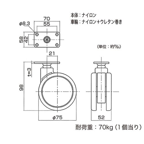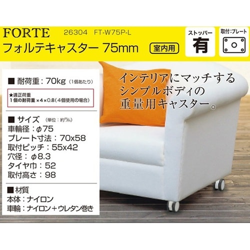 ハイロジック フォルテキャスター 75mm プレート・ストップ付 A055-4897