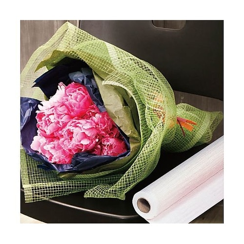 粗目のメッシュ状の不織布シートです。かための樹脂加工でほつれを防止しました。ナチュラルなフラワーラッピングにぴったりです。