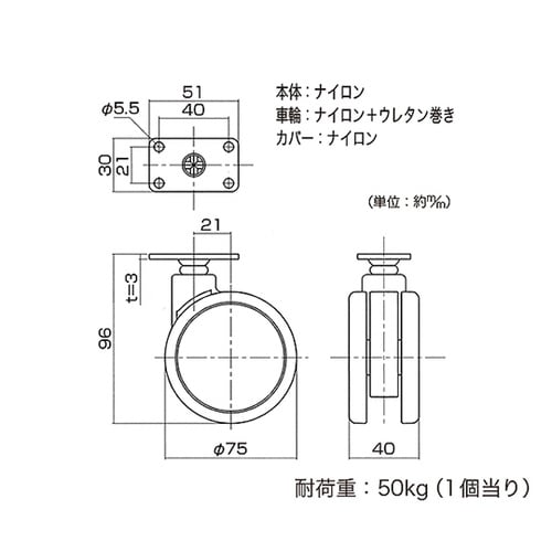 ハイロジック フレスコキャスター 75mm プレート・ストップ付 グレー A055-5106