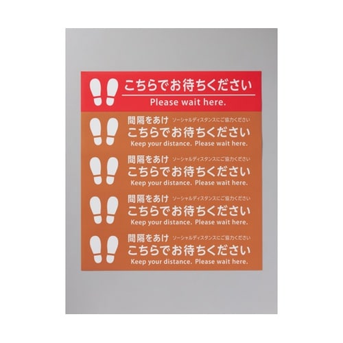 レジなどの待機列の誘導用に便利なフロア誘導サインステッカーです表面に梨地透明PETフィルム加工をしておりますので耐摩耗性に優れ、すべりにくい仕様です粘着剤はしっかり貼れてきれいにはがせる再剥離タイプ |