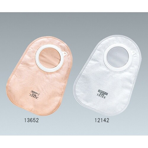 消化管ストーマ用。便排出口のないストーマ袋です。便の性状が観察できる透明タイプと目立ちにくい肌色タイプがあります。 |
