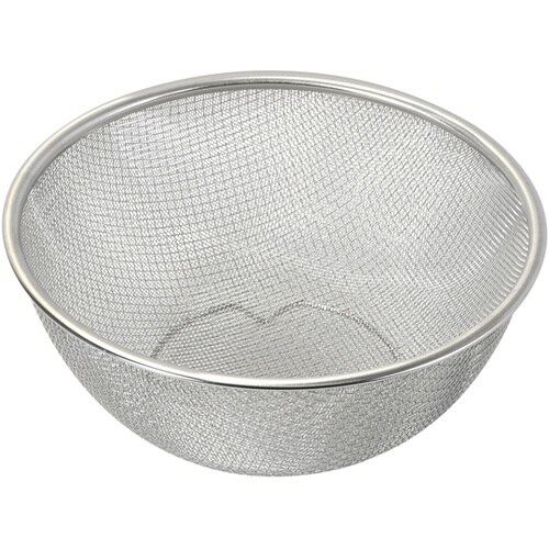 網を2重にした新設計で従来のボウル型ザルより高耐久。足付きで衛生的。 |