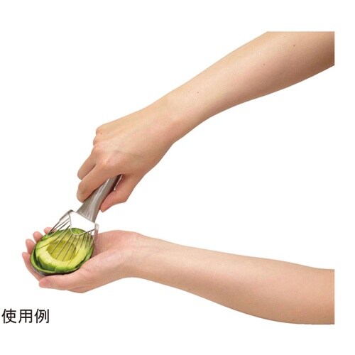 ステンレス刃だからよく切れる。刃がブレずにキレイにカット。半分にカットしたアボカドを皮に沿うようにして身をカットできます。 |