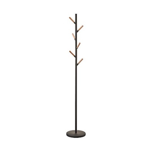 木製のバーとスチールを組み合わせたナチュラルでスタイリッシュなポールハンガー。バーの先端は帽子や繊細なストールを直接掛けても傷つきにくい。 |