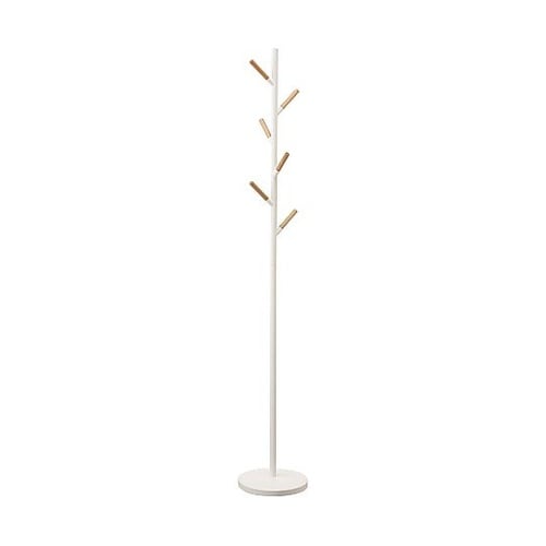 木製のバーとスチールを組み合わせたナチュラルでスタイリッシュなポールハンガー。バーの先端は帽子や繊細なストールを直接掛けても傷つきにくい。 |