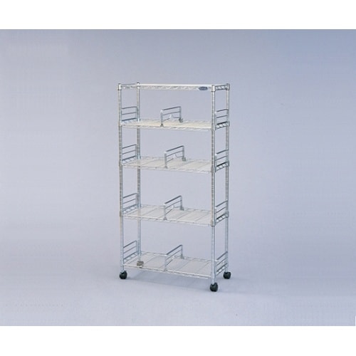 クロムメッキ仕上げのブックシェルフです。奥行きが約27.5cmなので、A4サイズのファイルがピッタリ収納できます。ブック用棚板1枚当たりに、固定式の落下防止用のガイドが2個、可動式の仕切り用ディバイダ