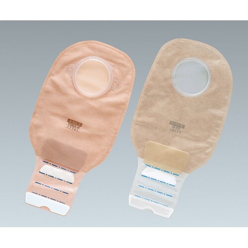 消化管ストーマ用。下部に便排出口があるストーマ袋です。脱臭フィルターの付いていないストーマ袋です。クリップレスタイプのため、操作が簡単で装着時の違和感も軽減します。面板の密着性を高めたい場合は「ユーケ