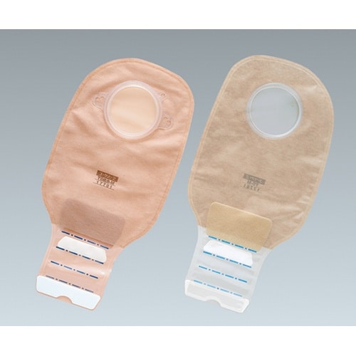 消化管ストーマ用。下部に便排出口があるストーマ袋です。脱臭フィルターの付いていないストーマ袋です。クリップレスタイプのため、操作が簡単で装着時の違和感も軽減します。面板の密着性を高めたい場合は「ユーケ |