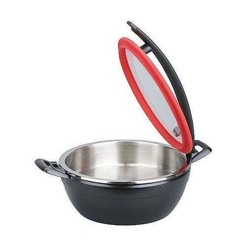 アルミキャストボディのため軽量です。蓋がガラスのため中が見えます。ウッド調ハンドルは和洋どちらにも、赤は差し色になり高級感を演出します。