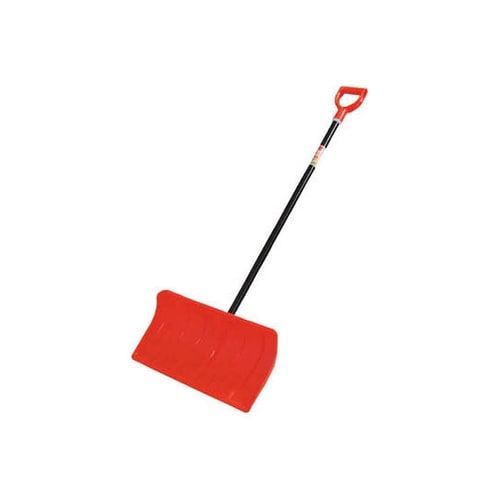 雪を押し除けて運ぶのに適した角度で、雪が脇から逃げないように両サイドの縁は高く設計してあります。玄関先や路面に降り積もった、新雪などの浅い雪を押し除ける作業に適しています。 |