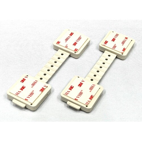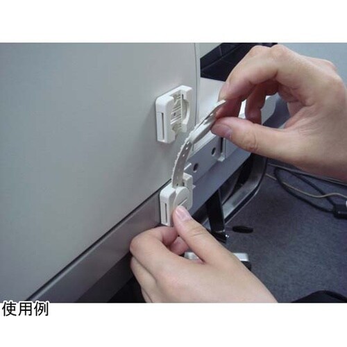 段積みされている装置や家電製品等の転倒・落下防止穴をあけない接着固定ロックトップをコインで外せば一時着脱可能 |