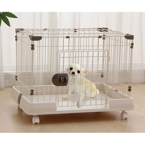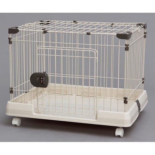 室内犬が快適に過ごせるサイズのペットケージです。ドアロックは片手で簡単に開閉できるワンタッチ式、天面扉はフルオープンタイプです。移動に便利なキャスター付きです。 |