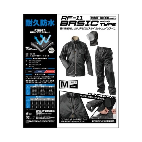 耐久防水万能な使い勝手基本機能をしっかり押さえたレインスーツスタイリッシュなタイプ |