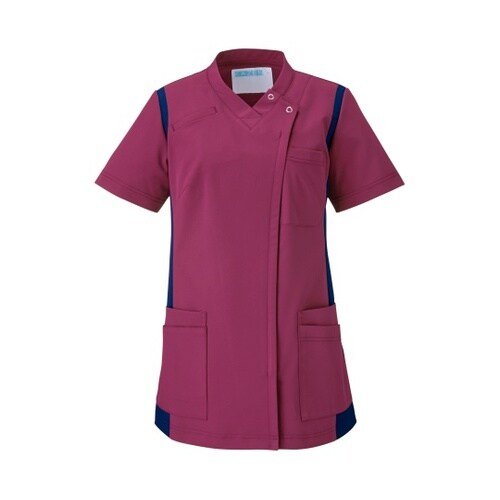 KAZEN レディススクラブ(前開き) ワインxネイビー L A055-6703