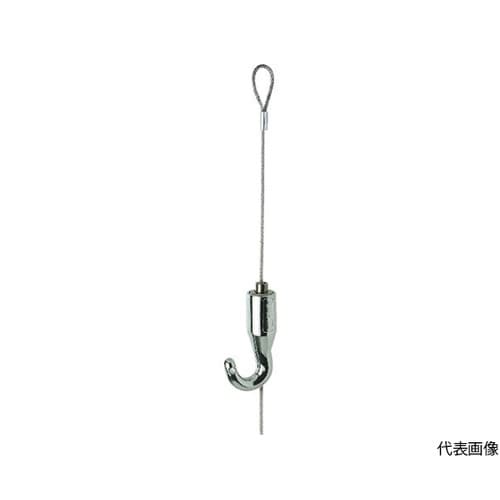 φ1.0のループワイヤーとフックのセットです。フックにはφ6までの紐やロッドがかけられます。ワイヤーは貫通し、位置調整が簡単に行えます。ループワイヤーとフックのセットなので、他社のレールフックにも使用 |