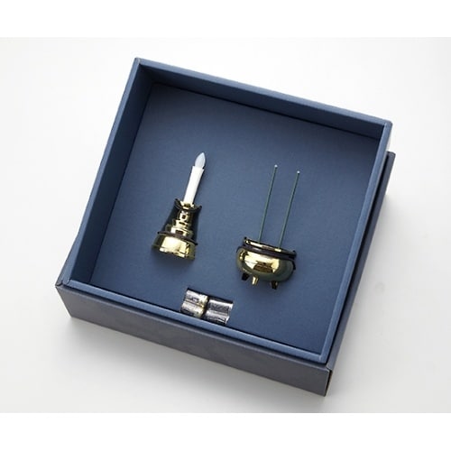電池式だから倒れても安心です。ろうそくは炎の部分、線香は灰入れ部にあるスイッチを押すと点灯・消灯ができます。 |
