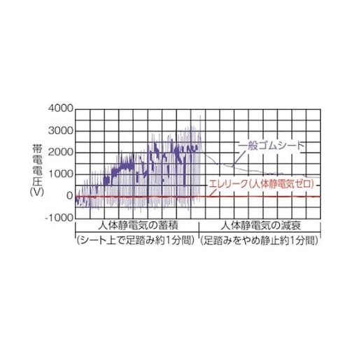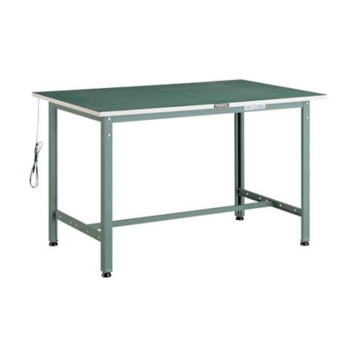 静電気を抑える帯電防止ゴムマット張りの天板です。耐油性、耐溶剤性に富むゴム材質のマットを使用しています。エレリーク敷設床の抵抗は2×10^6Ω程度です(電極面積28.26m2)。脚部はホワイト色です。 |