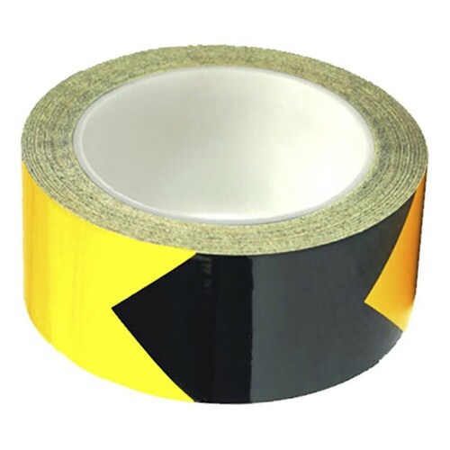 再帰反射ラインテープ 黄/黒 V字柄 50mm×22m 厚0.16mm 剥離紙有