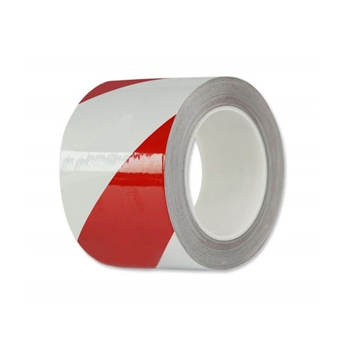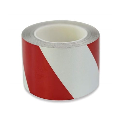 再帰反射ラインテープ 赤/白 100mm×22m 厚0.16mm 剥離紙有