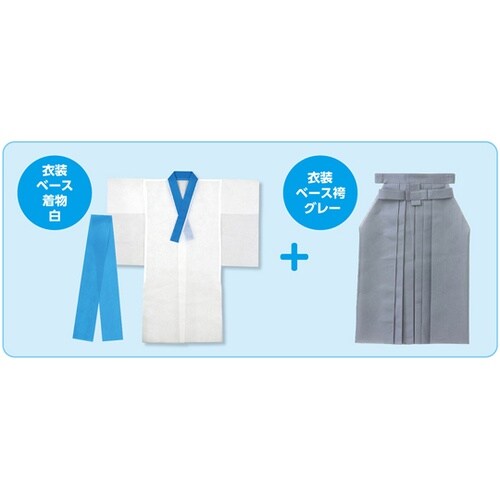 かっこいい着物と袴のセット!白色ベースで青襟がかっこいい着物の衣装ベースとグレーの袴のセットです。 |