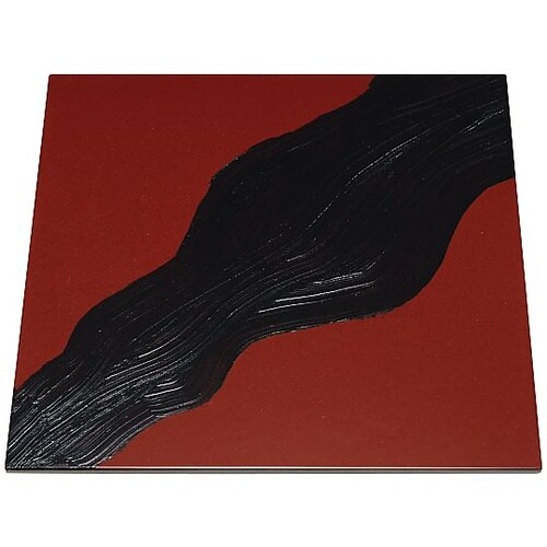 漆黒刷毛目 朱 正角トレー 黒流水 300×300×12mm