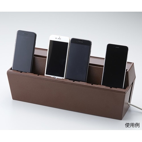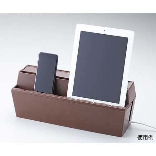 ごちゃつくタップとコードをすっきり隠して、充電スペースに。充電プラグを引っかけられるケーブルフック、天面にはタッチペンなど小物を置ける溝付。厚さ17mmまでのスマホ等が置いたままで充電できるスペースあ |