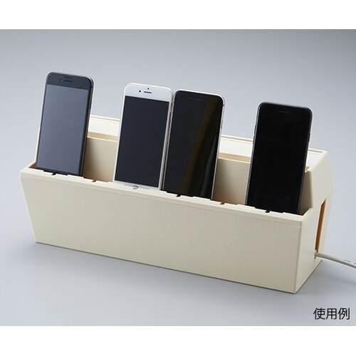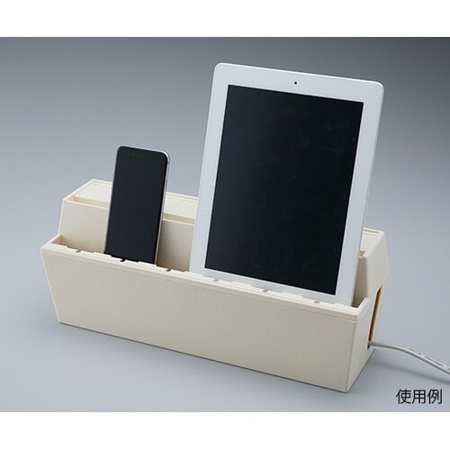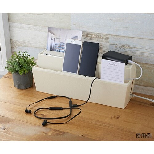 ごちゃつくタップとコードをすっきり隠して、充電スペースに。充電プラグを引っかけられるケーブルフック、天面にはタッチペンなど小物を置ける溝付。厚さ17mmまでのスマホ等が置いたままで充電できるスペースあ