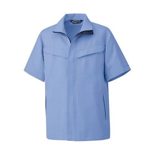 春夏作業服 帯電防止JIS適合品 IEC対応クリーンウェア 男女共用半袖ジャケット ラベンダーブルー LLサイズ