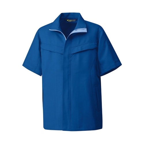 春夏作業服 帯電防止JIS適合品 IEC対応クリーンウェア 男女共用半袖ジャケット ロイヤルブルー LLサイズ