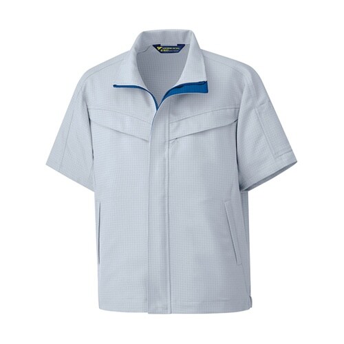 春夏作業服 帯電防止JIS適合品 IEC対応クリーンウェア 男女共用半袖ブルゾン シルバーグレー SSサイズ