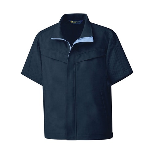 春夏作業服 帯電防止JIS適合品 IEC対応クリーンウェア 男女共用半袖ブルゾン ネイビーブルー 3Lサイズ