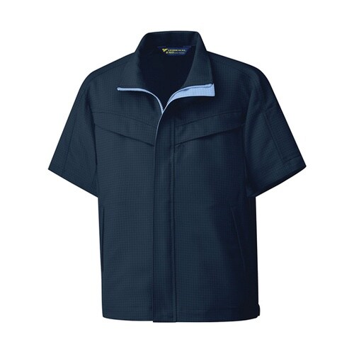 春夏作業服 帯電防止JIS適合品 IEC対応クリーンウェア 男女共用半袖ブルゾン ネイビーブルー Sサイズ