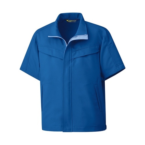 春夏作業服 帯電防止JIS適合品 IEC対応クリーンウェア 男女共用半袖ブルゾン ロイヤルブルー LLサイズ