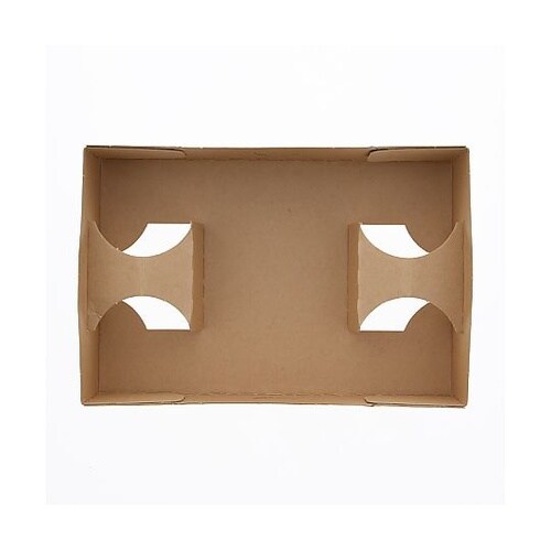 ナチュラルなクラフトテイストの食品箱です。ドリンクカップ(二重断熱カップ8オンス、ヘイコーAーPETカップ14−20オンスなど)を4個固定でき、中央部分にはハンバーガーやスナック類を置くことができます |