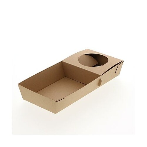 ナチュラルなクラフトテイストのテイクアウト用食品箱です。ドリンクカップ1個(二重断熱カップ8オンス、ヘイコーAーPETカップ14−20オンスなど)を固定でき、横にはハンバーガーやスナック類を置くことが |