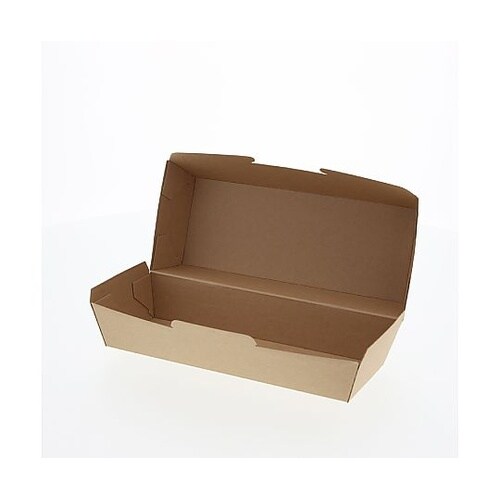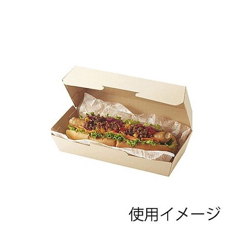 ナチュラルなクラフトテイストの食品箱です。ホットドッグやバケットサンドなどのテイクアウト、デリバリーにおすすめです。成型された状態で包装された商品です。※食品の長期保存には適しません。電子レンジ使用可 |